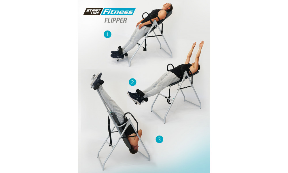 Инверсионный стол FLIPPER — новинка в линейке инверсионных тренажеров Start Line Fitness. Усовершенствованный дизайн и трендовая расцветка делают его не только полезными для вашего здоровья, но и стильным элементом домашнего интерьера. Регулярные занятия на инверсионном столе помогут избавиться от болей в спине и позвоночнике, расслабить мышцы и повысить жизненный тонус. FLIPPER имеет простые настройки под рост и регулировку положений. Обивка спинки изготавливается из износостойких материалов. Удобная и простая система регулировки угла наклона ремнем позволяет настроить оптимальный угол для занятий. Ограничительный стержень, входящий в комплект, позволит строго ограничить угол наклона в двух положения. Широкий ремень безопасности добавит комфорта и уверенности при пользовании тренажером. Складная конструкция позволяет легко перемещать и компактно хранить тренажер.