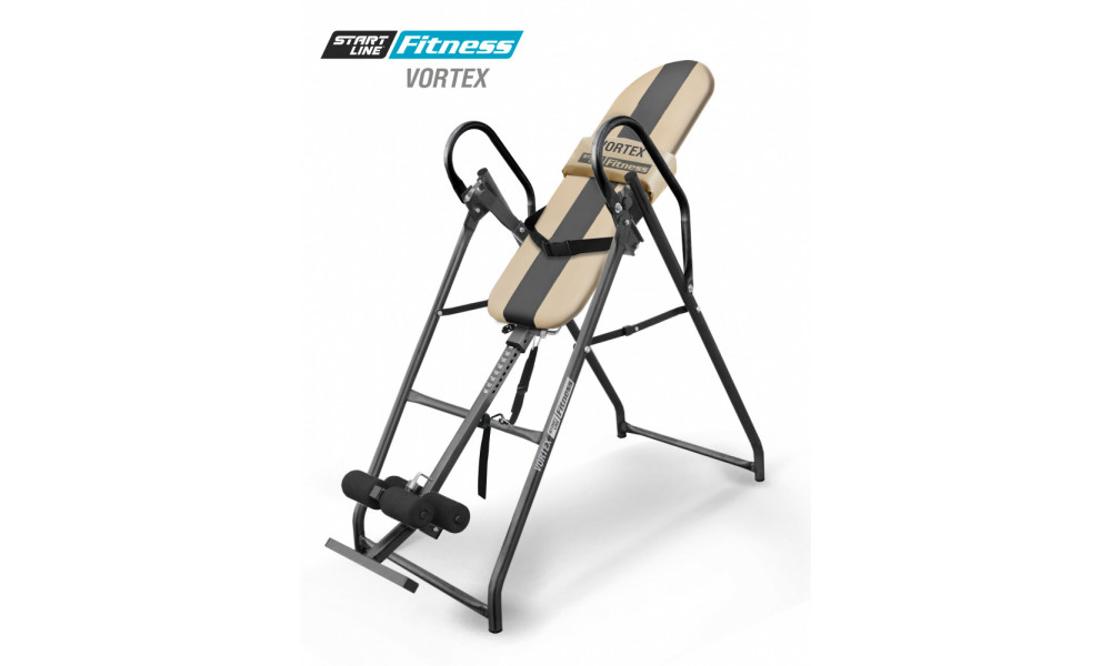 Инверсионный стол Vortex - новый ультрасовременный инверсионный тренажер от Start Line Fitness в стильном дизайне, который станет идеальным дополнением любого интерьера. Отличительной особенностью нового стола является наличие усиленной спинки, благодаря чему модель Vortex абсолютно безопасна в использовании. Стол с легкостью выдерживает нагрузку до 115 кг, при этом обладает небольшим весом. Инверсионный стол оснащен мягкой сверхпрочной спинкой для комфортной тренировки. Обивка спинки изготовлена из износостойкой и долговечной экокожи. Важным дополнением модели Vortex является удобная съемная подушка, которая позволяет правильно распределить и уменьшить нагрузку на мышцы спины. Инверсионный стол имеет складную конструкцию, которая позволяет убрать стол на хранение в одно движение, не занимая много места. Текстильная застежка фиксирует регулятор роста, что делает хранение еще более удобным и безопасным. Заниматься инверсионной терапией на столе Vortex могут как подростки, так и взрослые люди, ведь уровень роста новой модели изменяется от 150 до 197 см. Ограничение угла наклона осуществляется с помощью двух ремней, позволяющих выставить оптимальный угол для тренировки. При возврате в исходное положение энергоемкий амортизатор поглощает удар об опорную часть. Инверсионный стол Vortex оснащен надежной системой крепления ног. Механизм фиксируется одним движением, а мягкие валики исключают любые дискомфортные ощущения во время тренировки, надежно закрепляя голени в любом положении. Модель оборудована ремнем, позволяющим надежно зафиксировать положение тела, а также боковыми эргономичными ручками, которые обеспечивают безопасность и комфорт во время эксплуатации. Инверсионный стол Vortex - идеальное сочетание исключительной надежности конструкции, пользы от занятий, компактности и ультрасовременного дизайна.